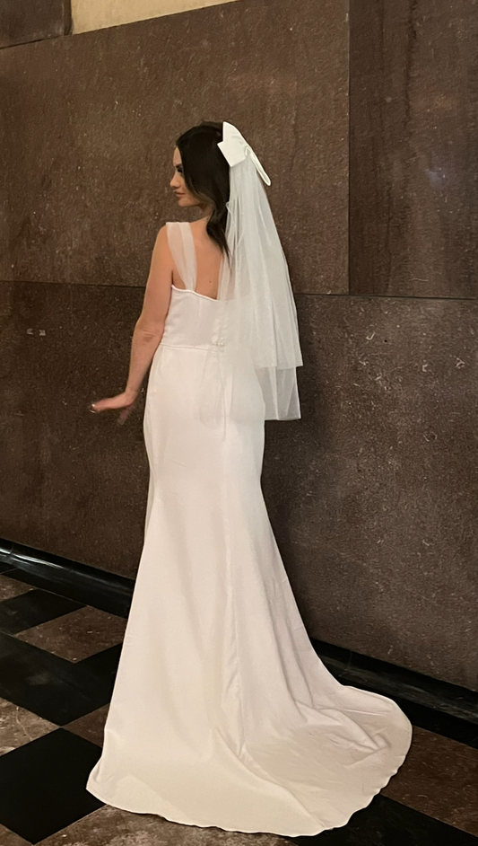 Beautiful Big Satin Bow Two Layers Tulle Short Bridal Veil