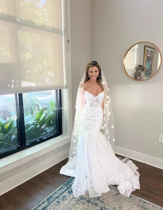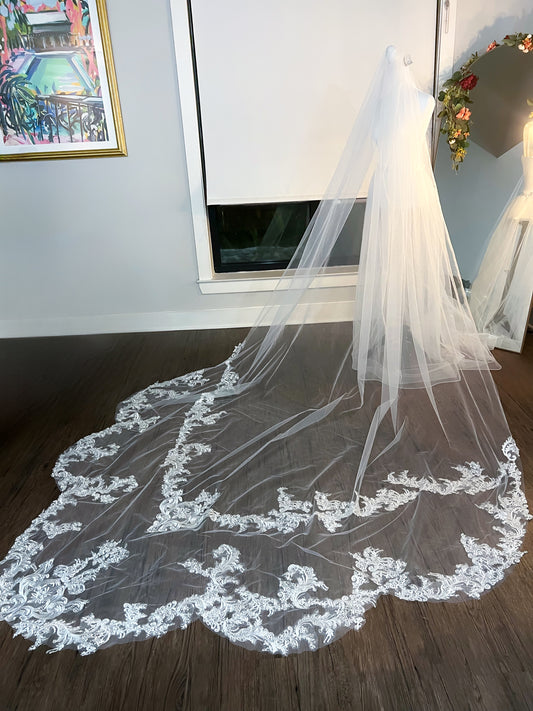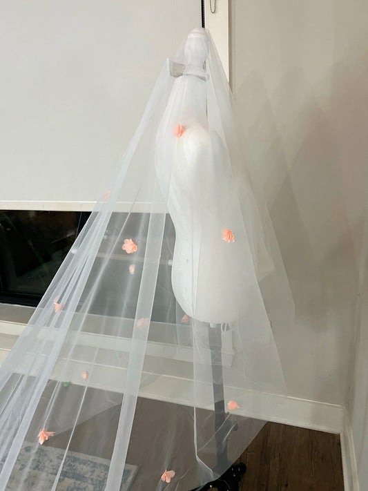 3D Flowers Cathedral Length Wedding Veil