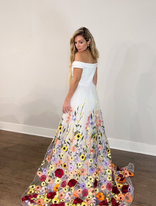 3D Colorful Flowers Tulle Bridal Wedding Train
