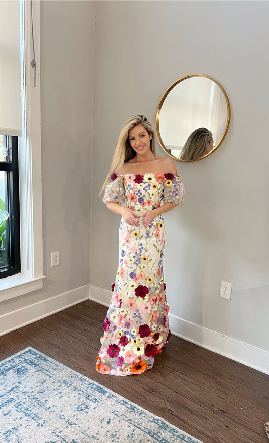 3D Flowers Floral Evening Wedding Guest Dress