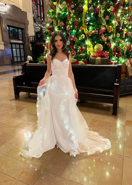 One of a Kind LED Fairy Lights Tulle Wedding Train: Enchanting Light-Up Design