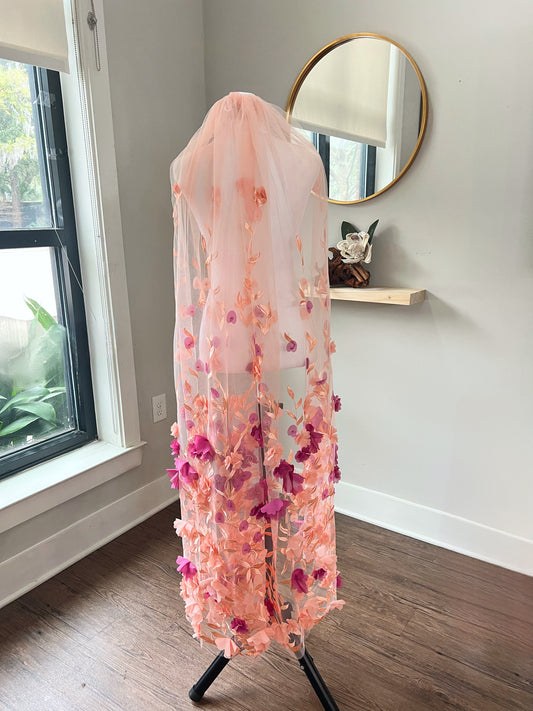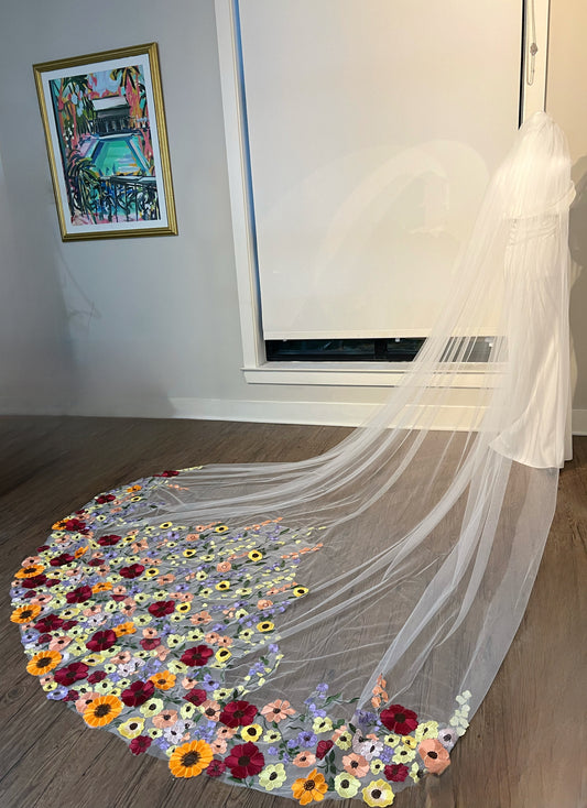Colorful 3D Flowers Unique Long Wedding Veil