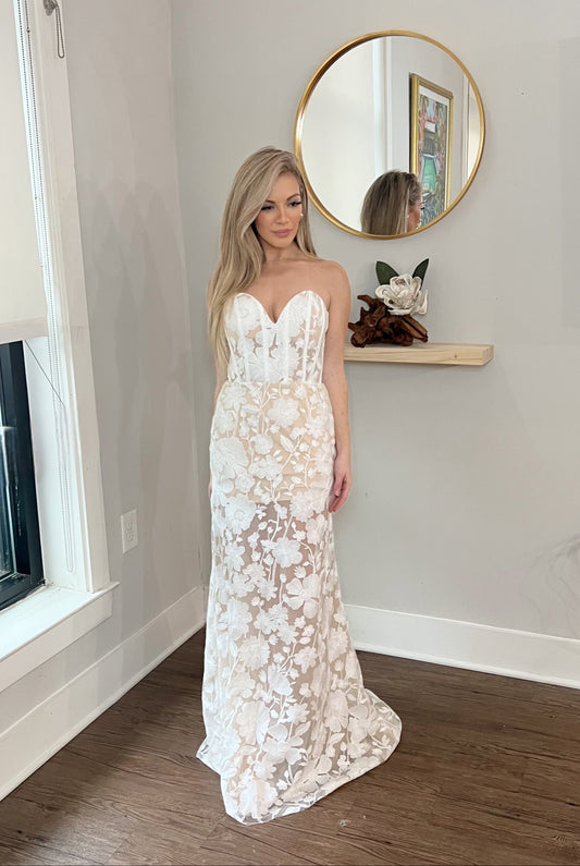 Romantic Floral Lace Wedding Dress with Sweetheart Neckline