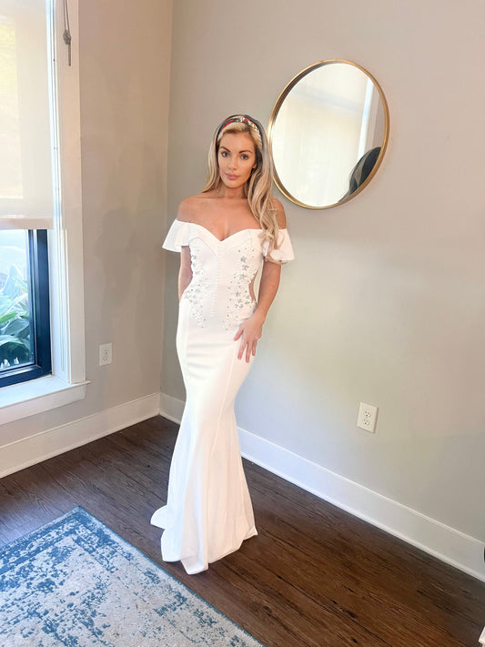 Old Hollywood Beaded Sequin Off Shoulder Trumpet Wedding Dress