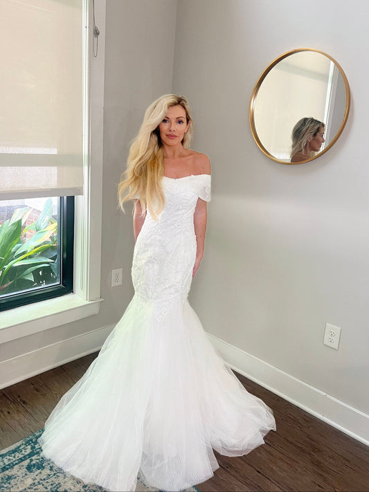 Simple Classic Trumpet Off Shoulder Wedding Dress