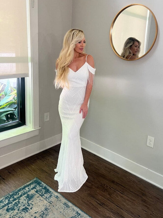 Old Hollywood Beaded Sequin Off Shoulder Trumpet Wedding Dress