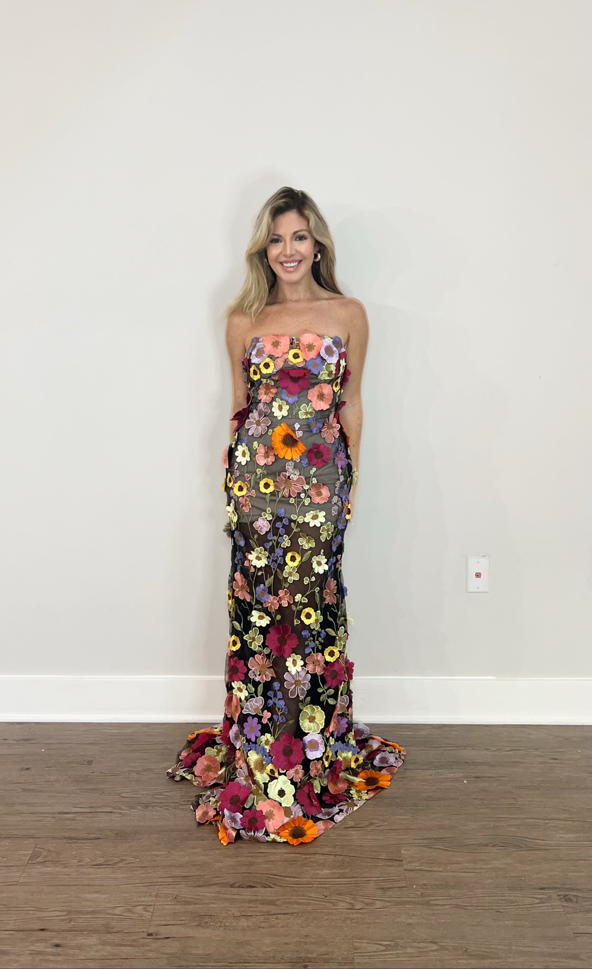 Elevate your style with our 3D Flowers Floral Evening Dress. Whether you're attending a wedding or a fancy event, this dress is perfect for any occasion. Expertly crafted, it features a fit and flare style that beautifully flatters your figure. Make a statement and turn heads with this show stopping dress.