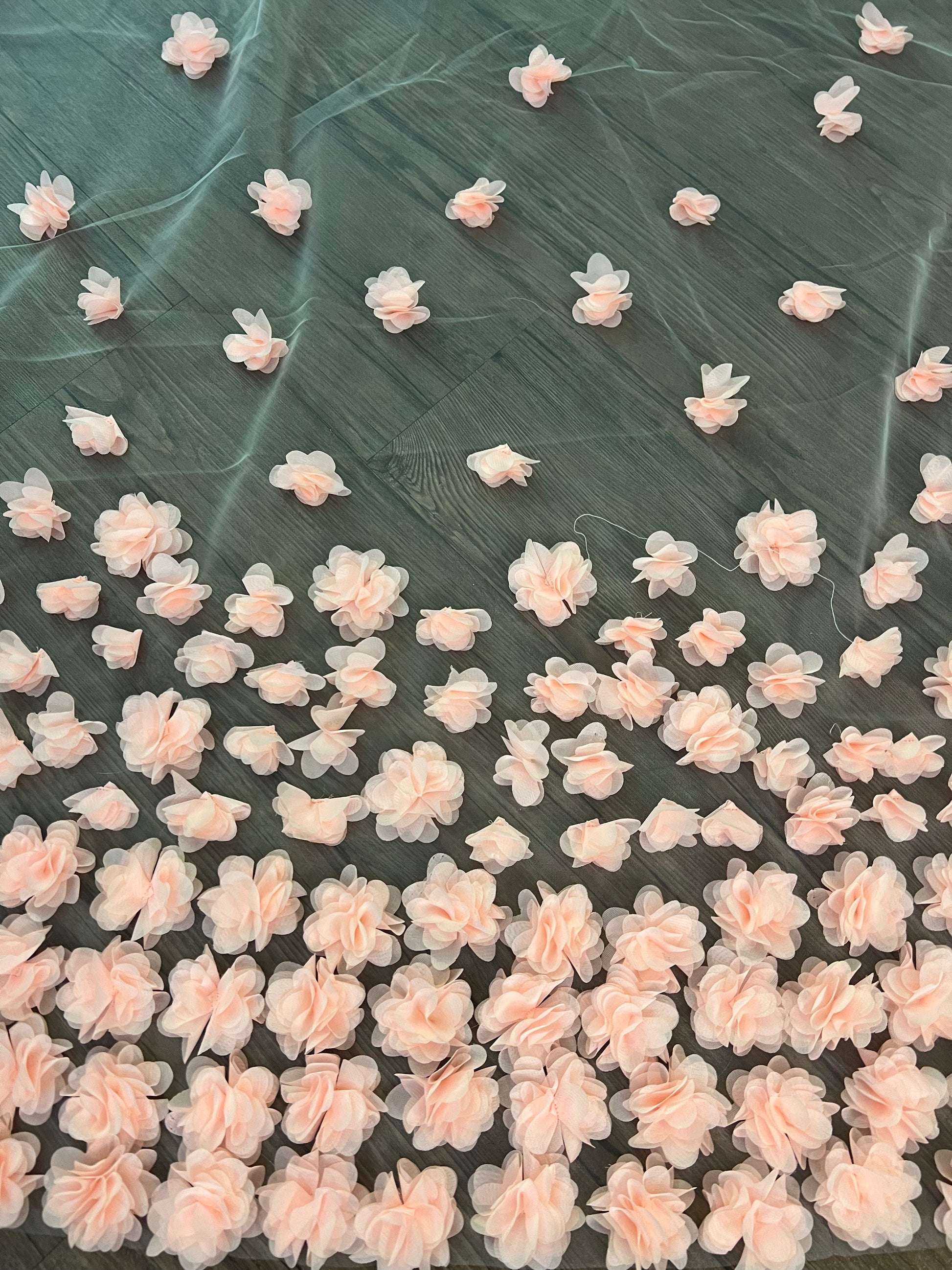 Elevate your wedding dress with our enchanting handcrafted bridal veil adorned with delicate pink floral accents. Ideal for brides searching for that unique, romantic flourish, this veil promises to add an ethereal touch to your bridal look. This exquisite accessory adds a soft, ethereal touch to any bridal ensemble. Our veil is expertly designed to complement a range of wedding dress styles. Explore our selection and make your walk down the aisle unforgettable with the perfect marriage of modern design and timeless beauty.