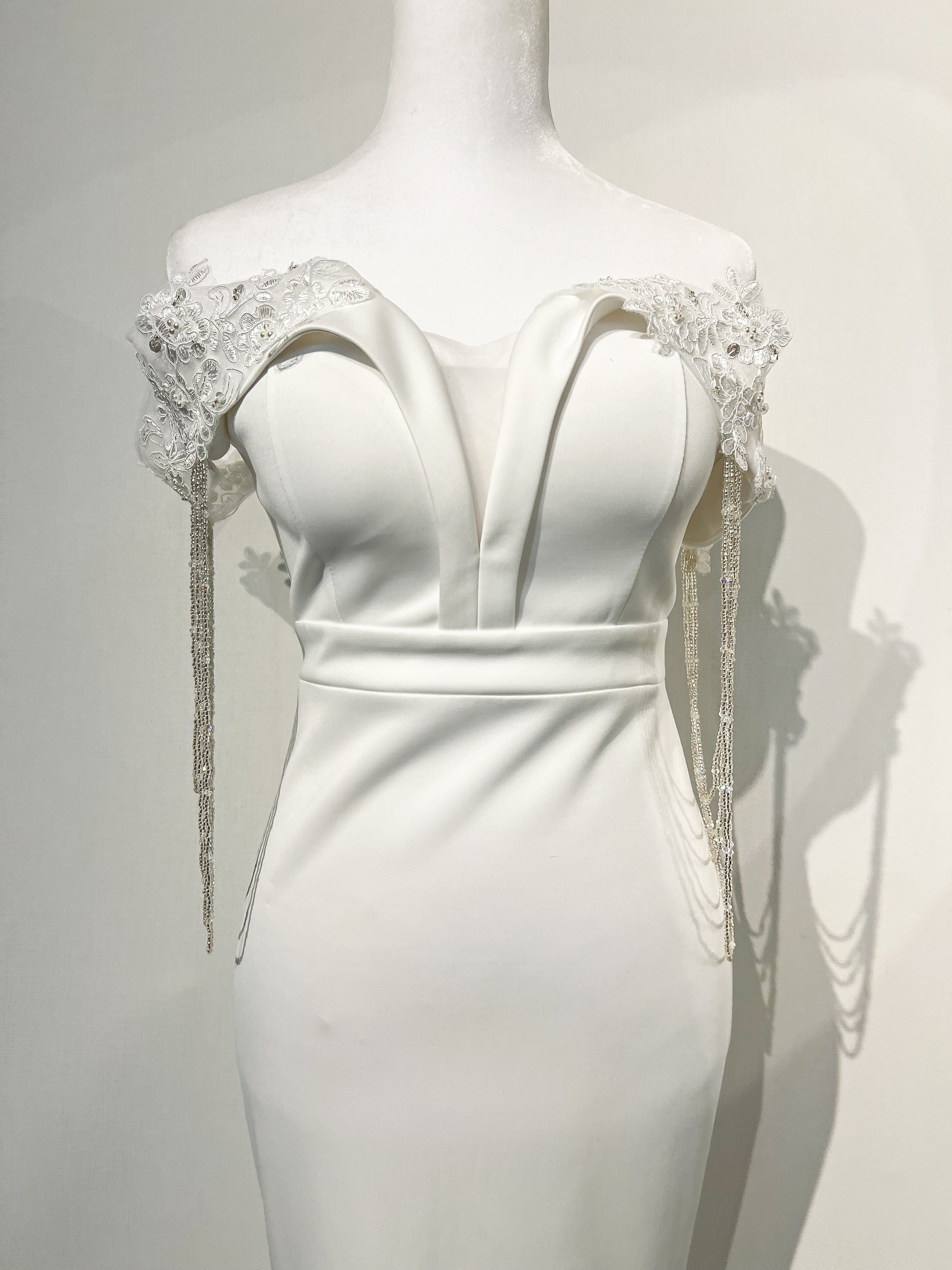 A seamstress can sew on buttons to your dress for a detachable look, or the sleeves can be stitched directly onto the dress. Alternatively, safety pins can be used to attach them to the gown for your own desired look! If you have any questions please do not hesitate to reach out.