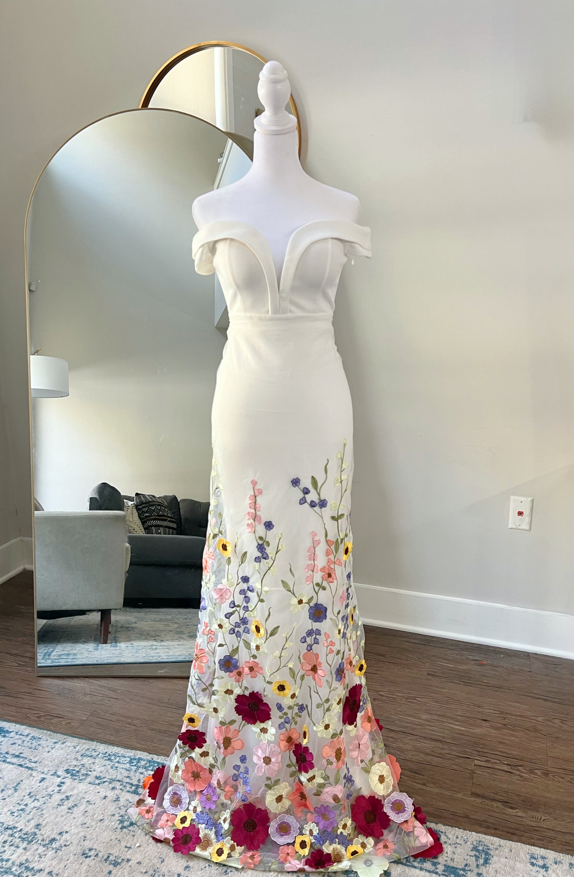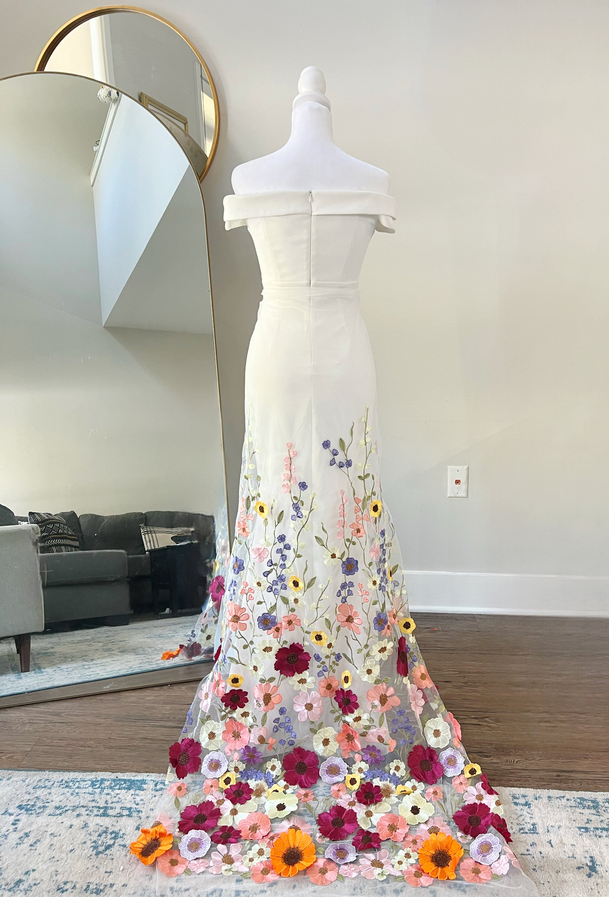 Expertly designed for the modern bride, the Deep V Off Shoulder Color 3D Colorful Daisies Flowers Mermaid Wedding Dress combines a feminine silhouette with comfort and style. Made with jersey material, this dress features a stunning off shoulder deep v neckline and a flattering mermaid cut. Embellished with 3D flowers, it's the perfect choice for spring and summer weddings or outdoor ceremonies.