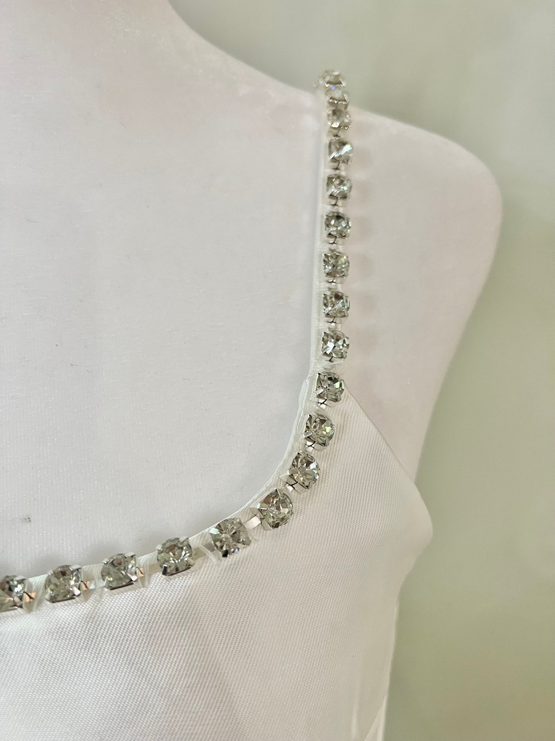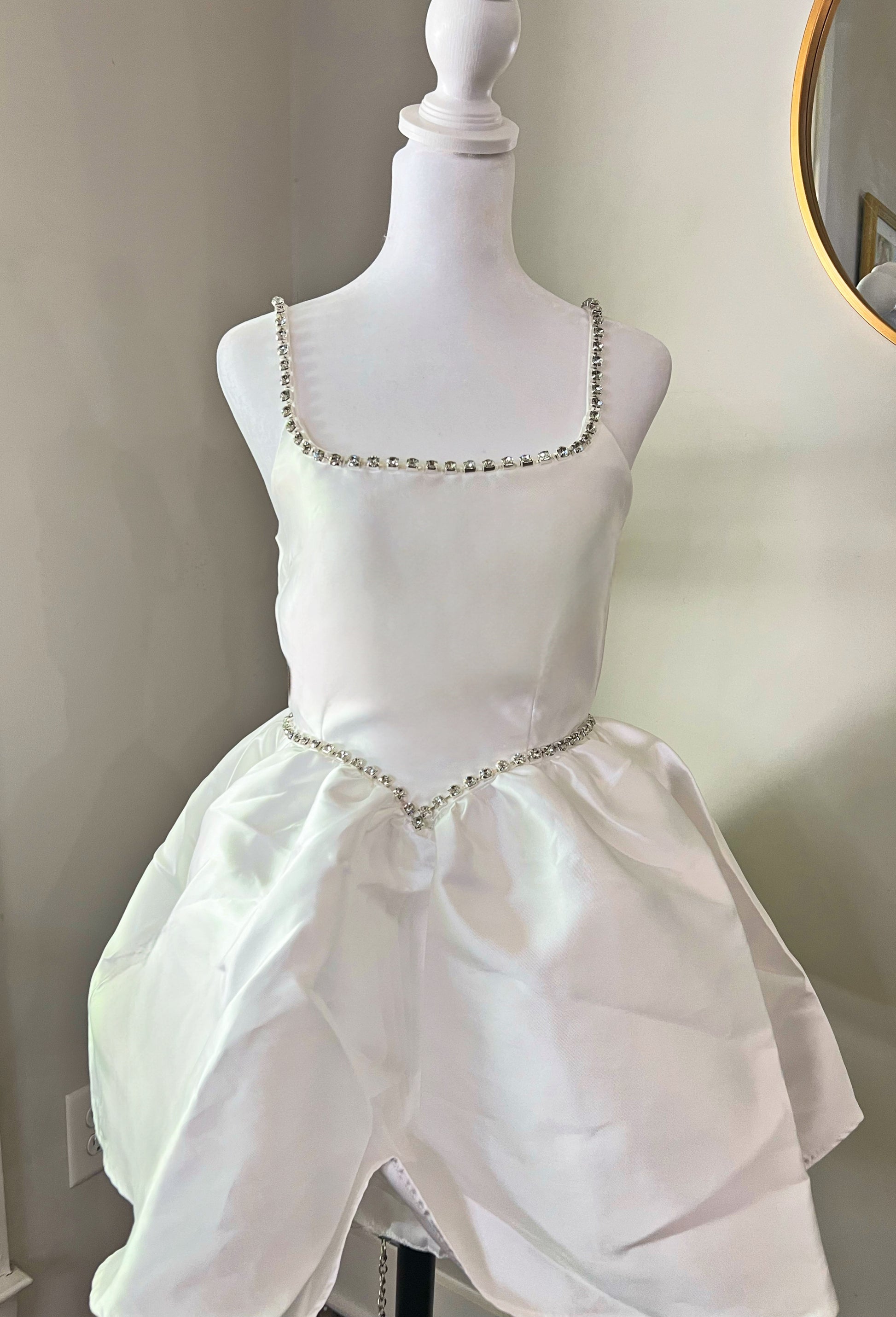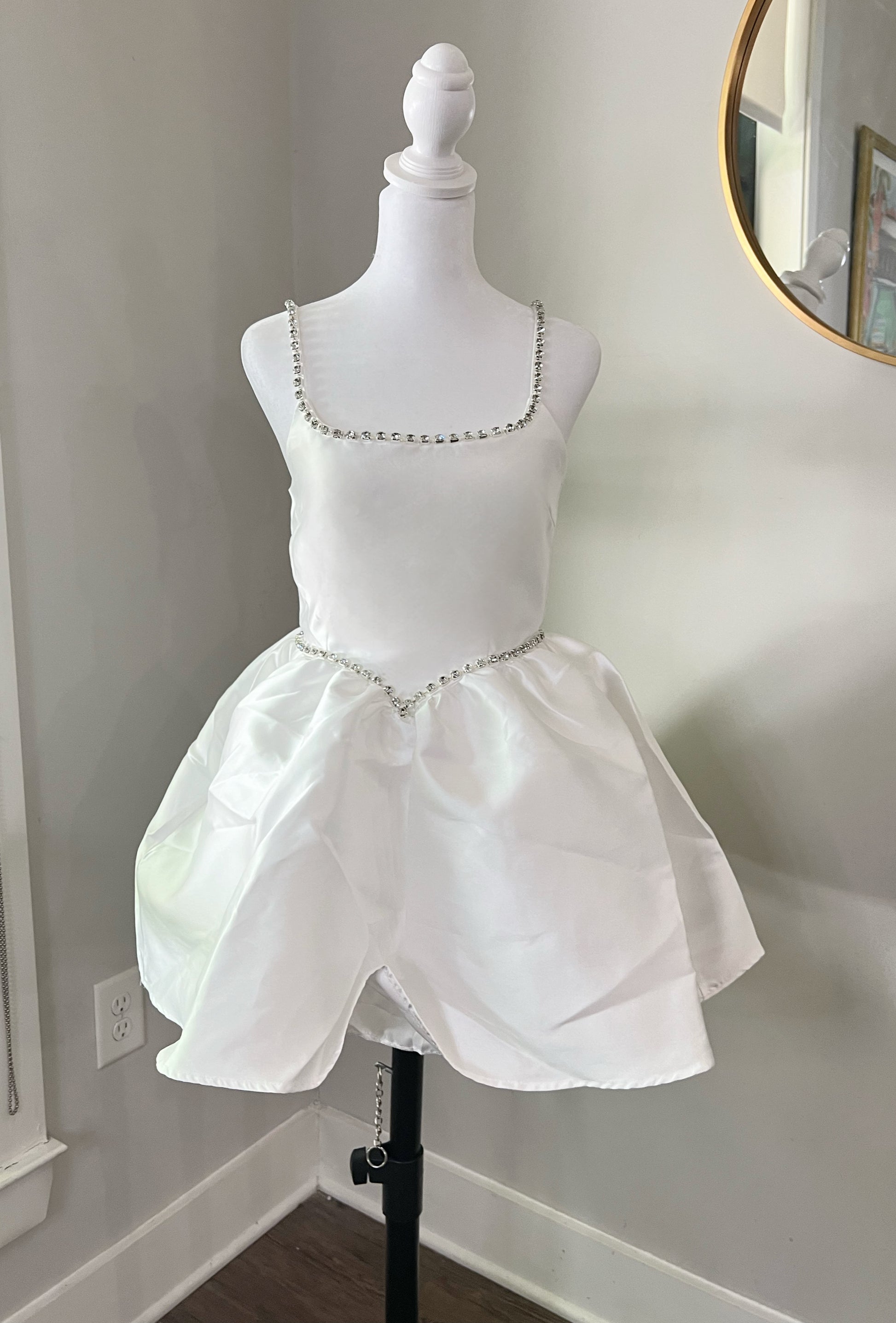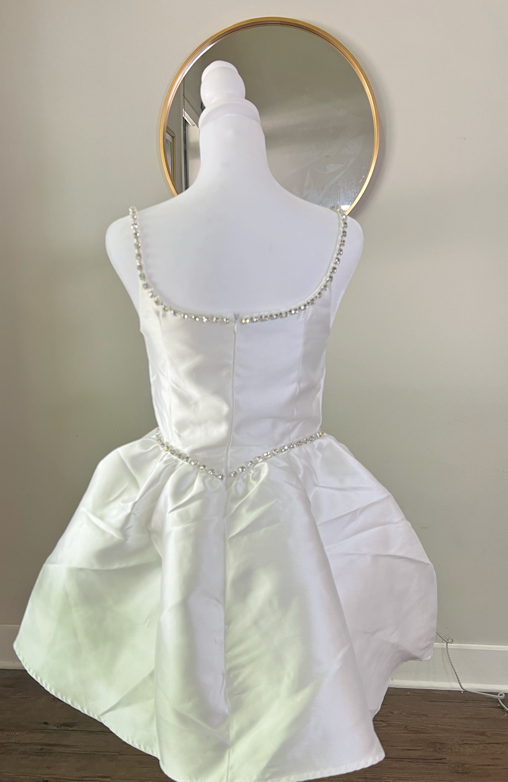 Elegant Satin Mini Bridal Reception Dress with Embellished Accents