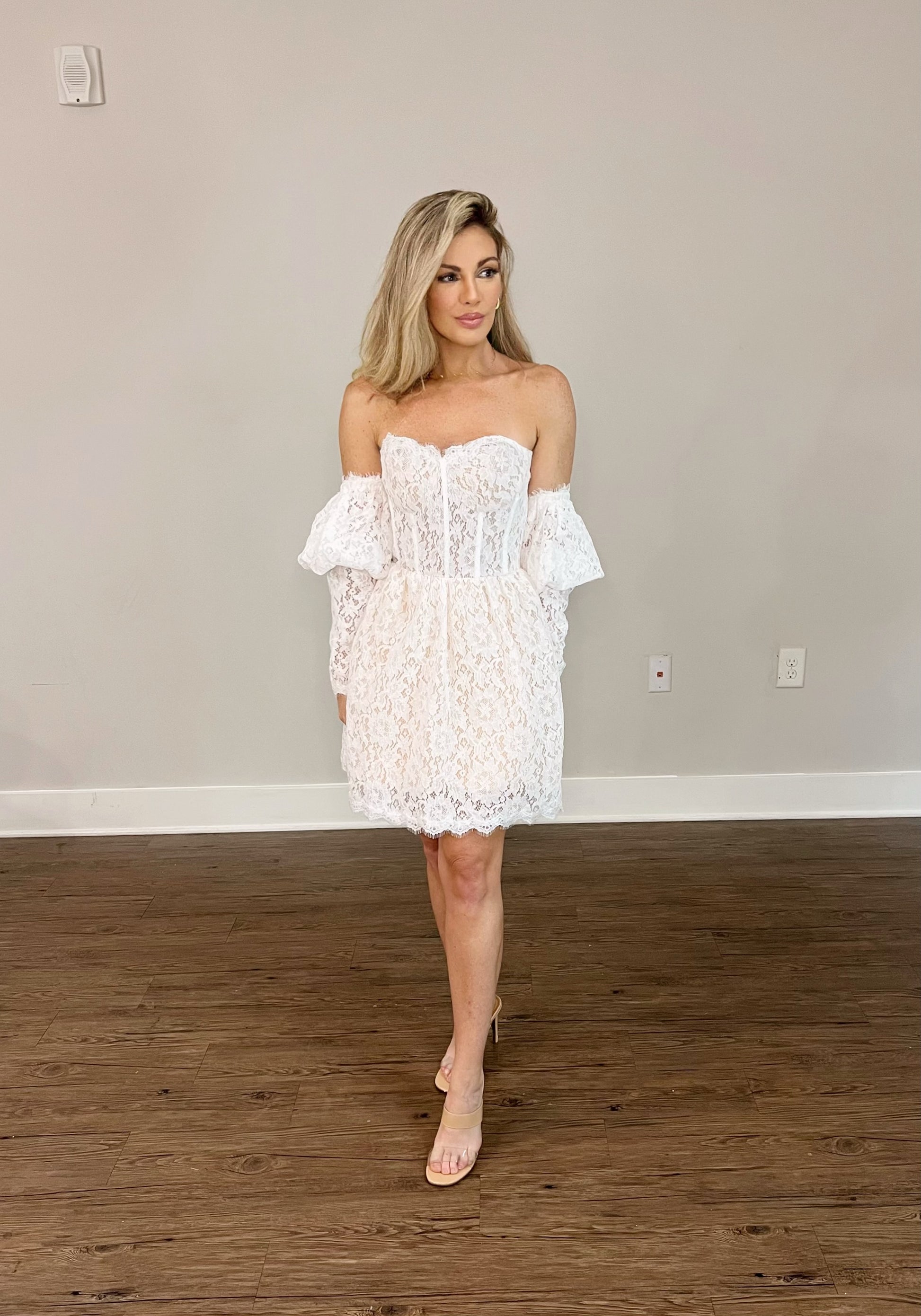 Lace Mini Corset Bridal Dress With Lace Gloves