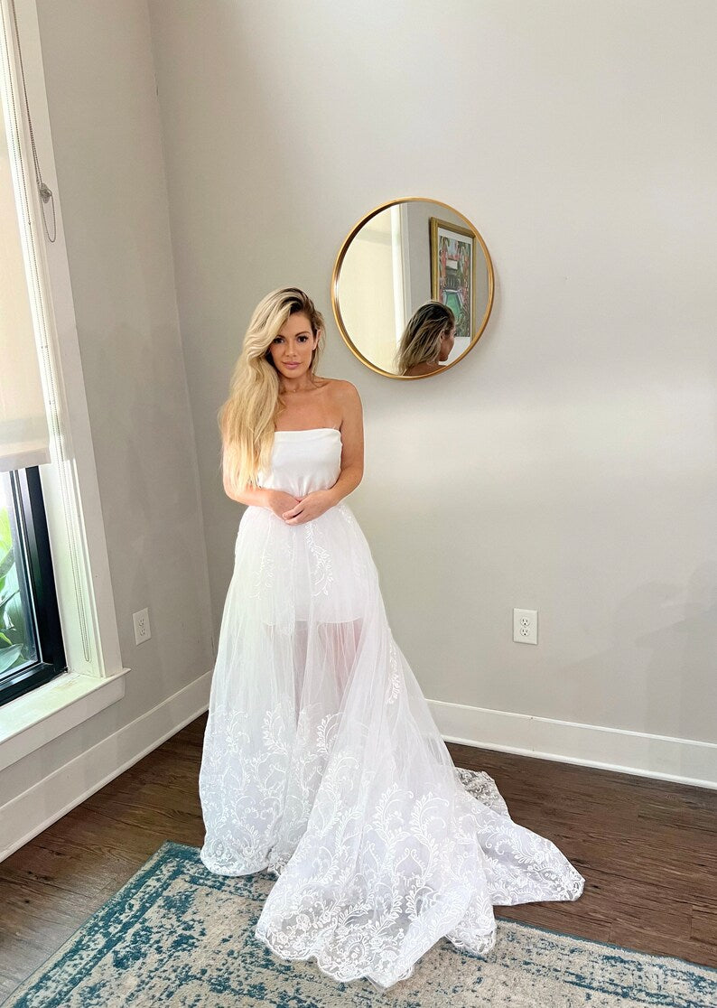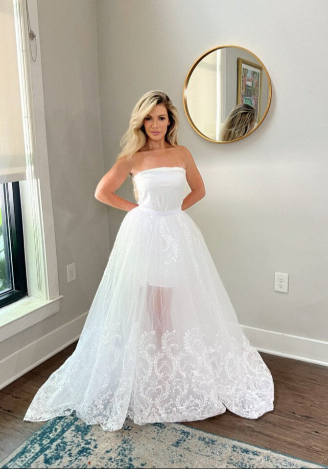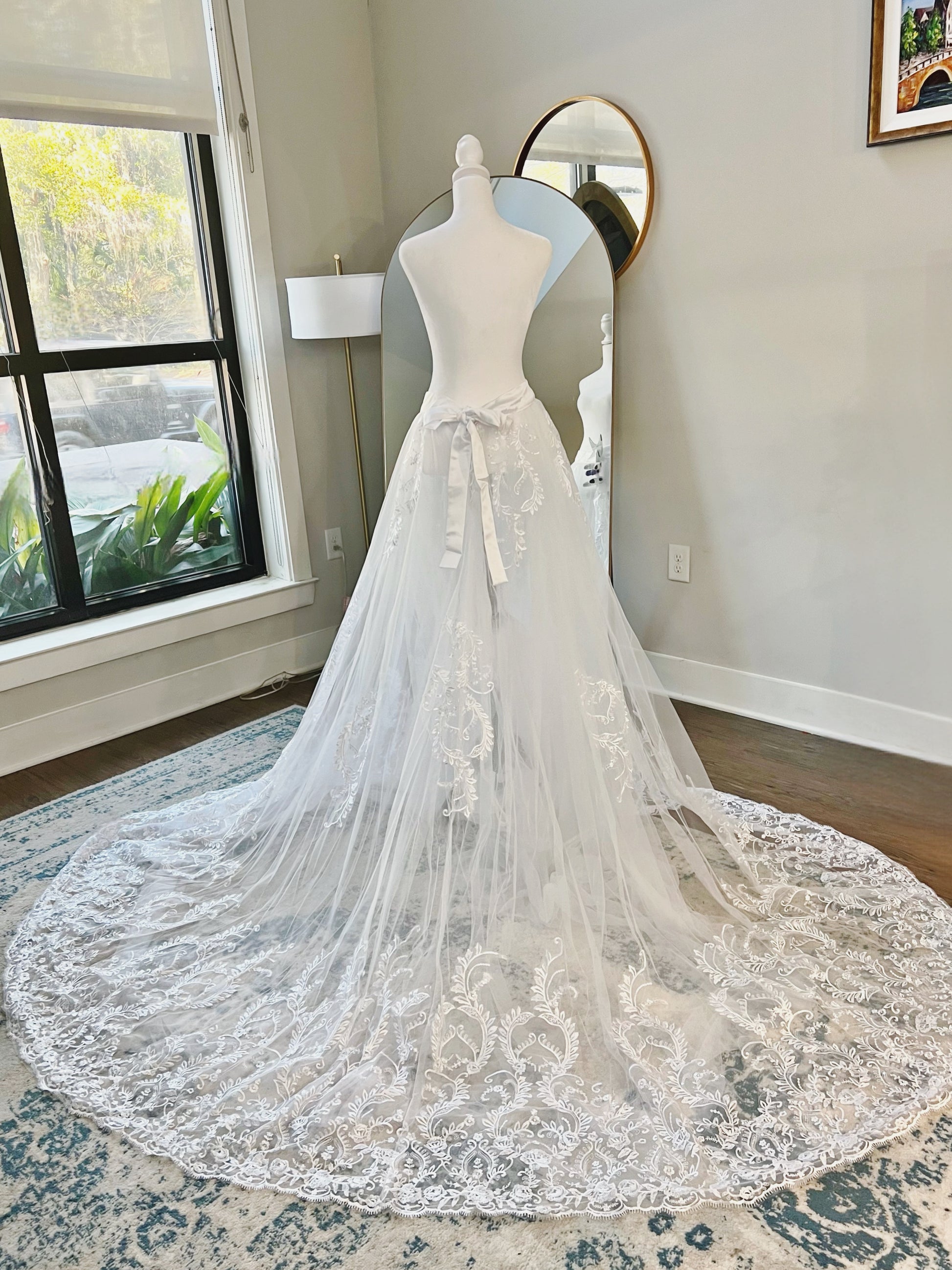 Transform any wedding dress into a look you want! This stunning Bridal Overskirt is an ideal addition for wedding gowns, after-party ensembles, and rehearsal dinner attire. It will turn any dress into a beautiful ballgown! The skirt features a lace-up back to provide a gorgeous figure-hugging silhouette, without requiring any alterations.