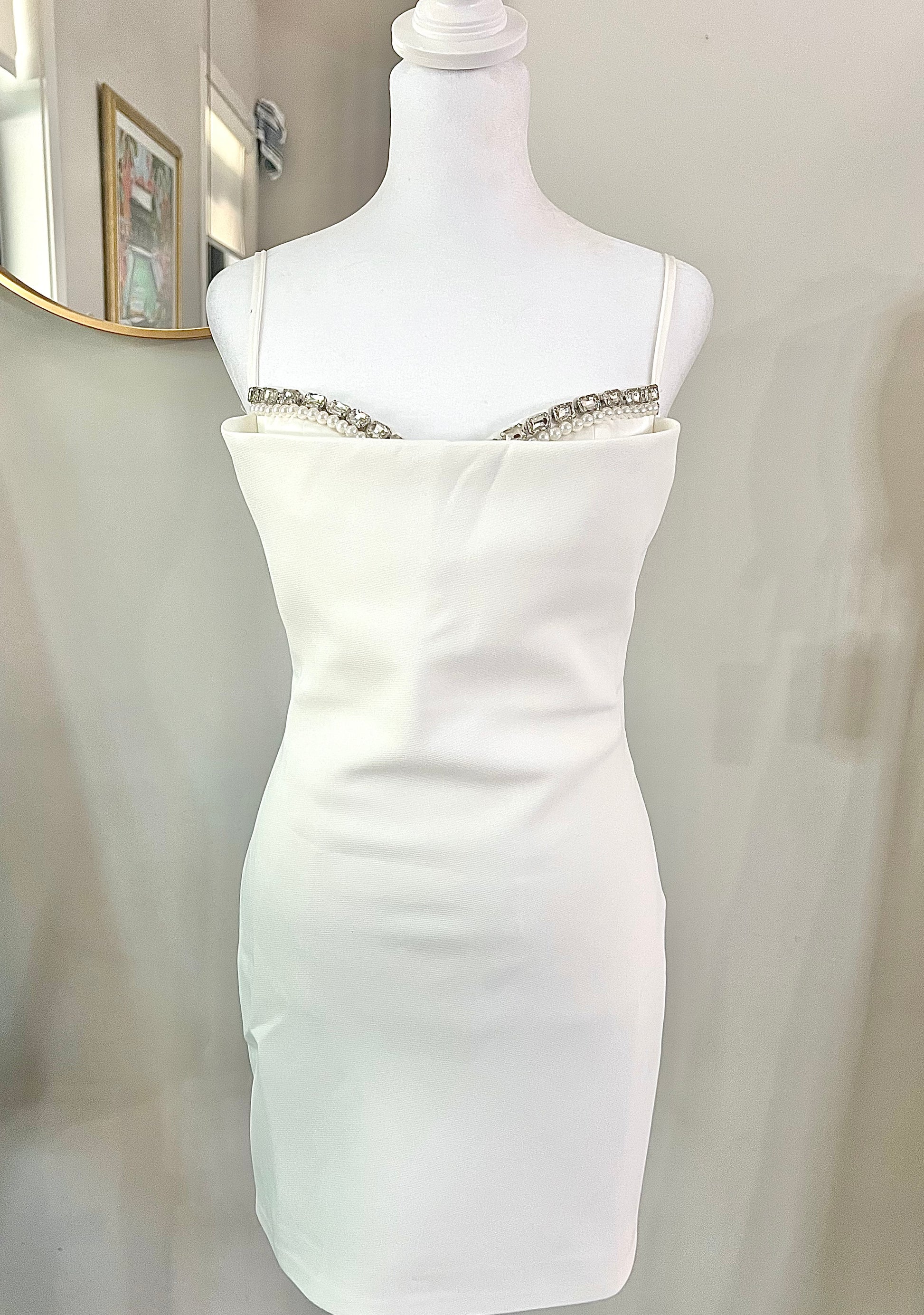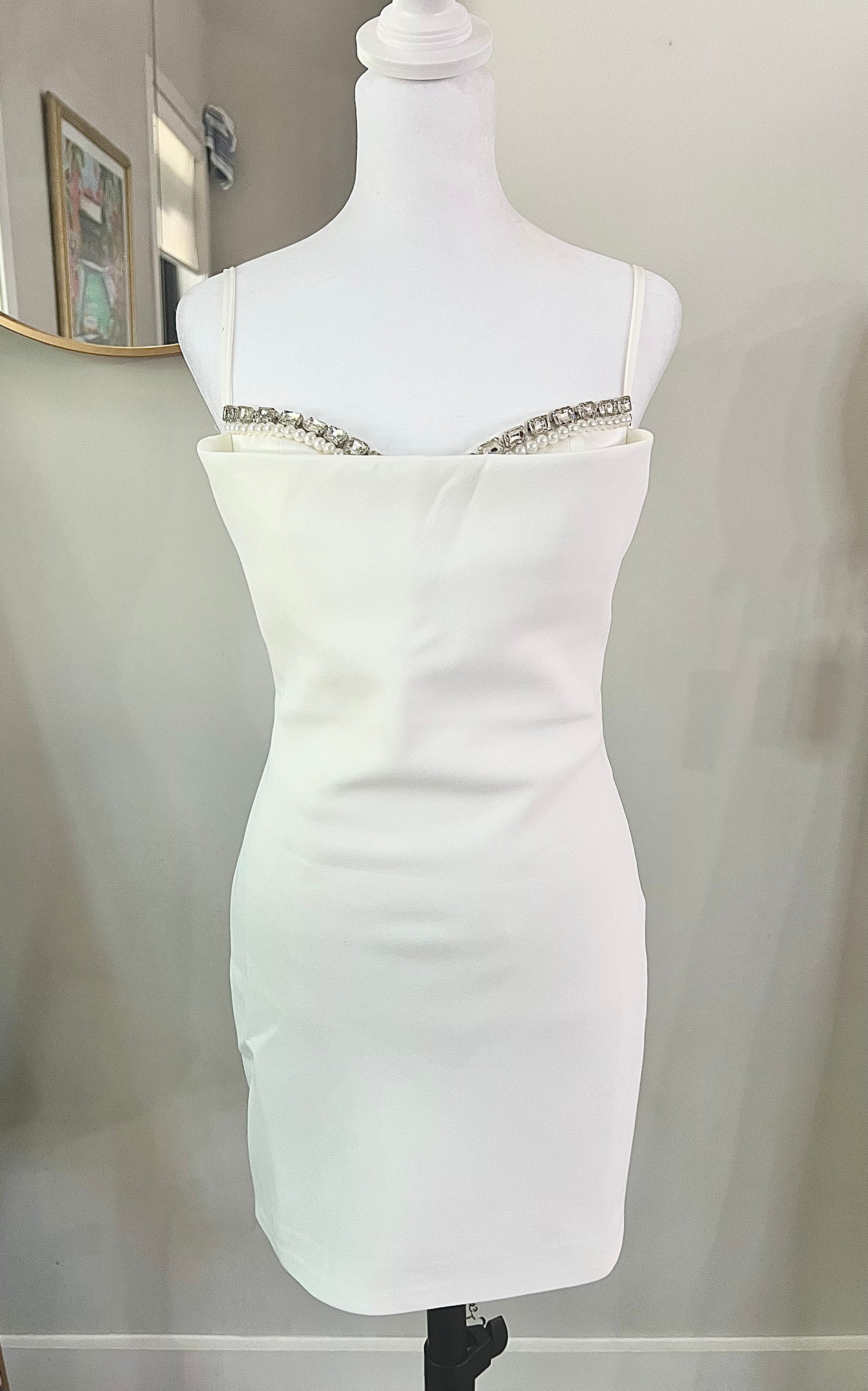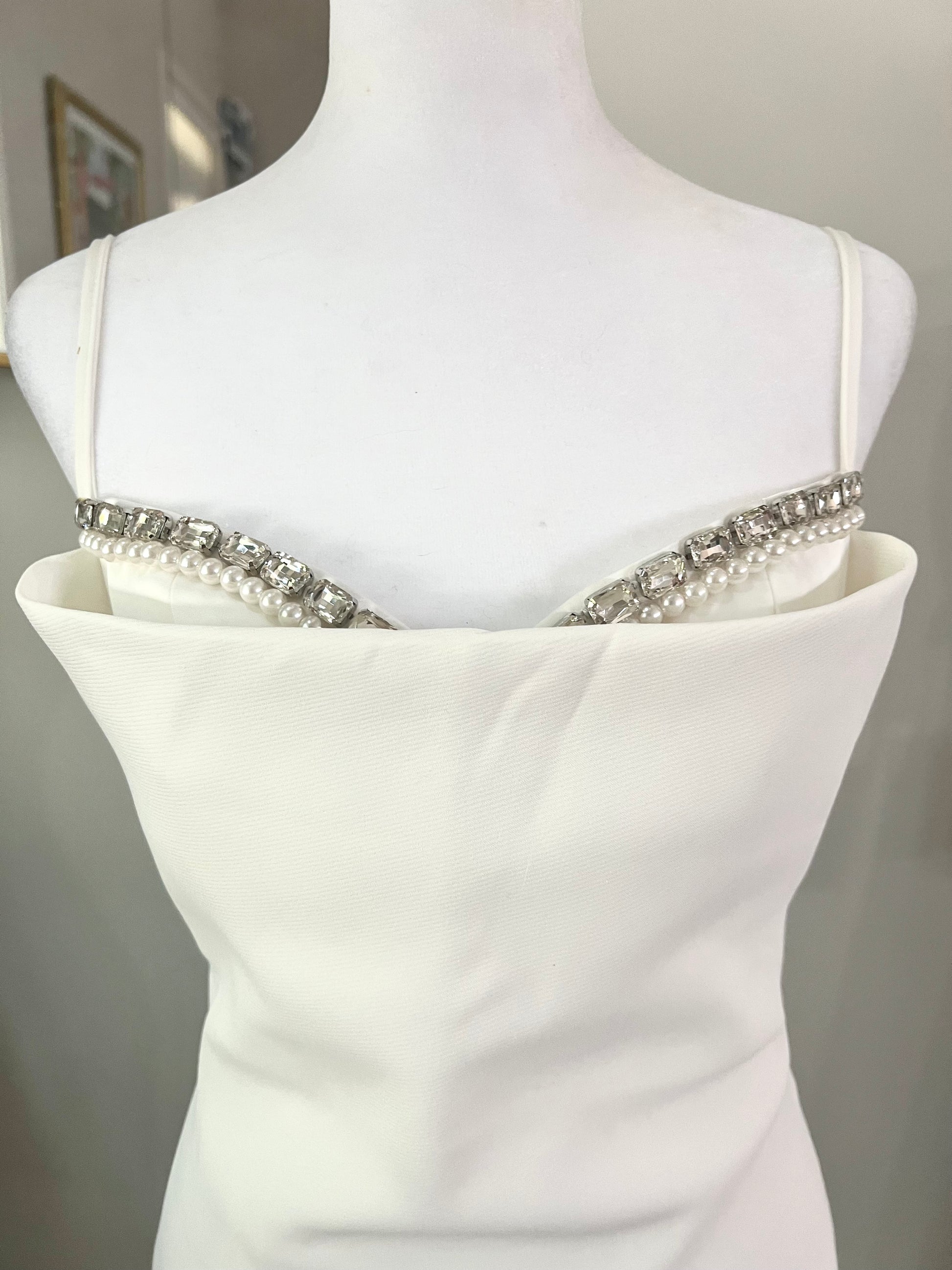 Peekaboo Pearl & Crystal Studded White Mini Bridal Dress