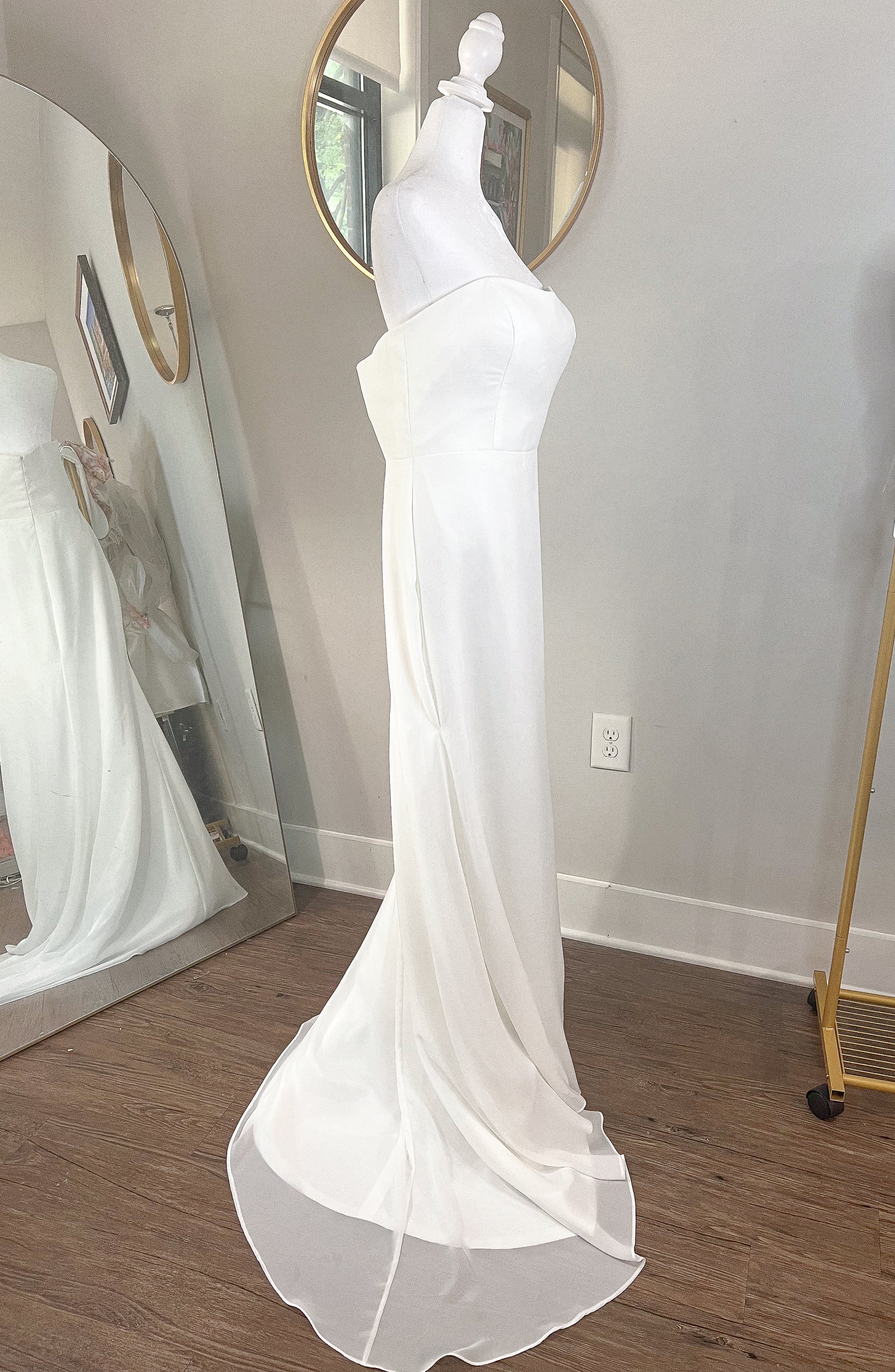 We create each wedding dress/train once it has been ordered. This can take anywhere from 1-5 weeks depending on the dress. Detachable Trains can take 1-3 weeks. Please contact us if you need the item immediately or if you will be crunched for time.