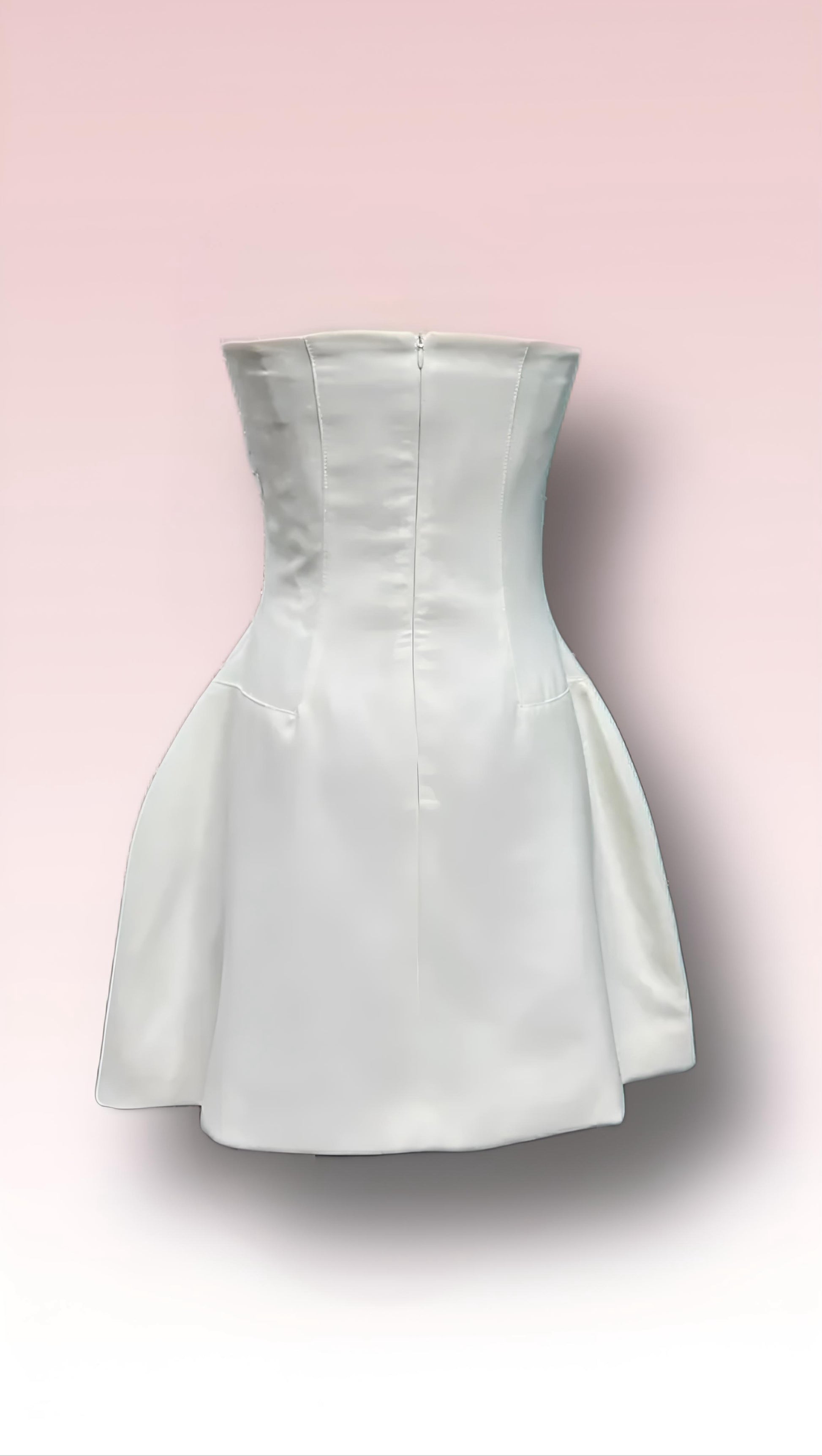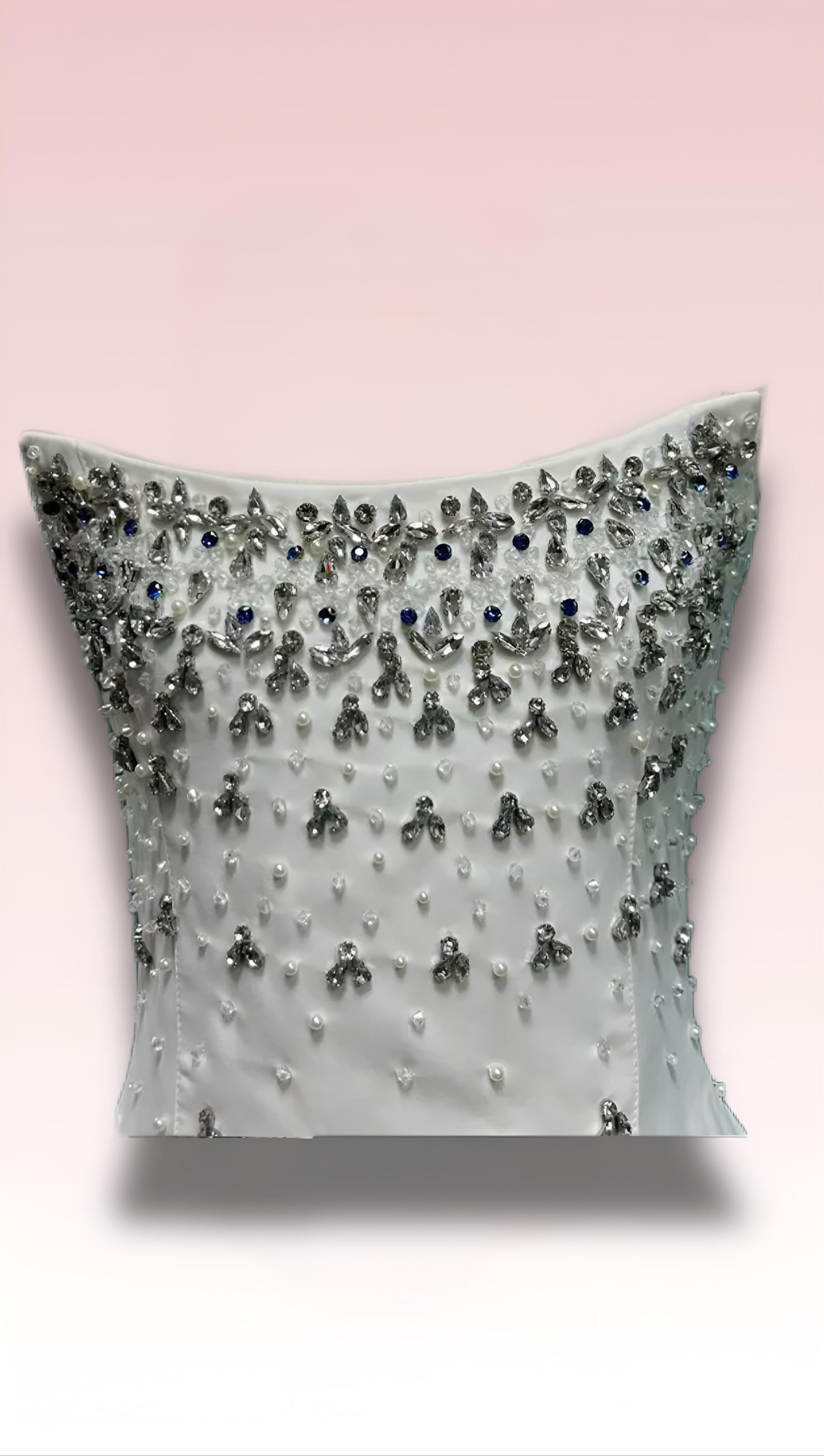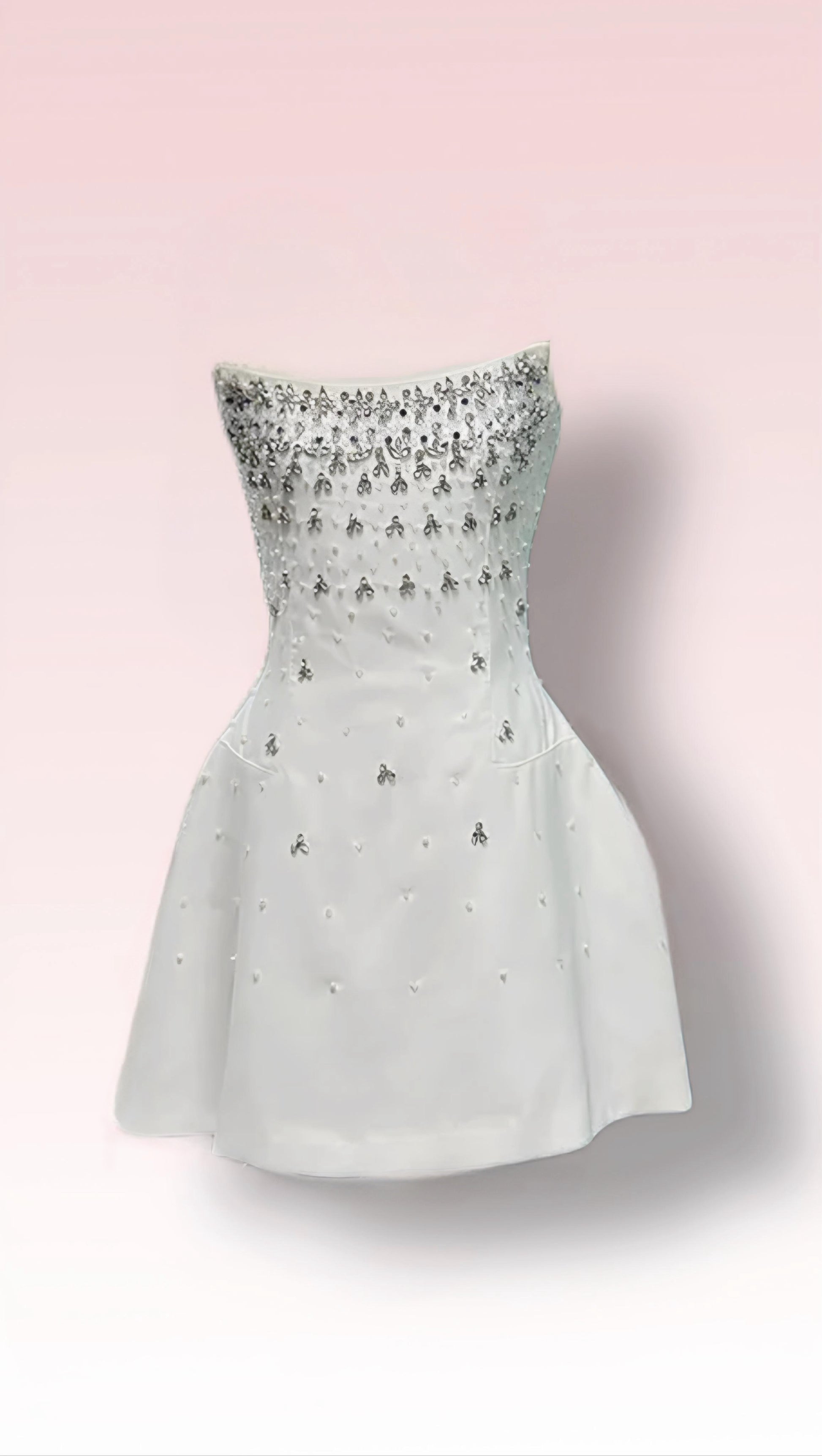 Sparkling Silver Beaded Short Strapless Wedding Reception Cocktail Dress