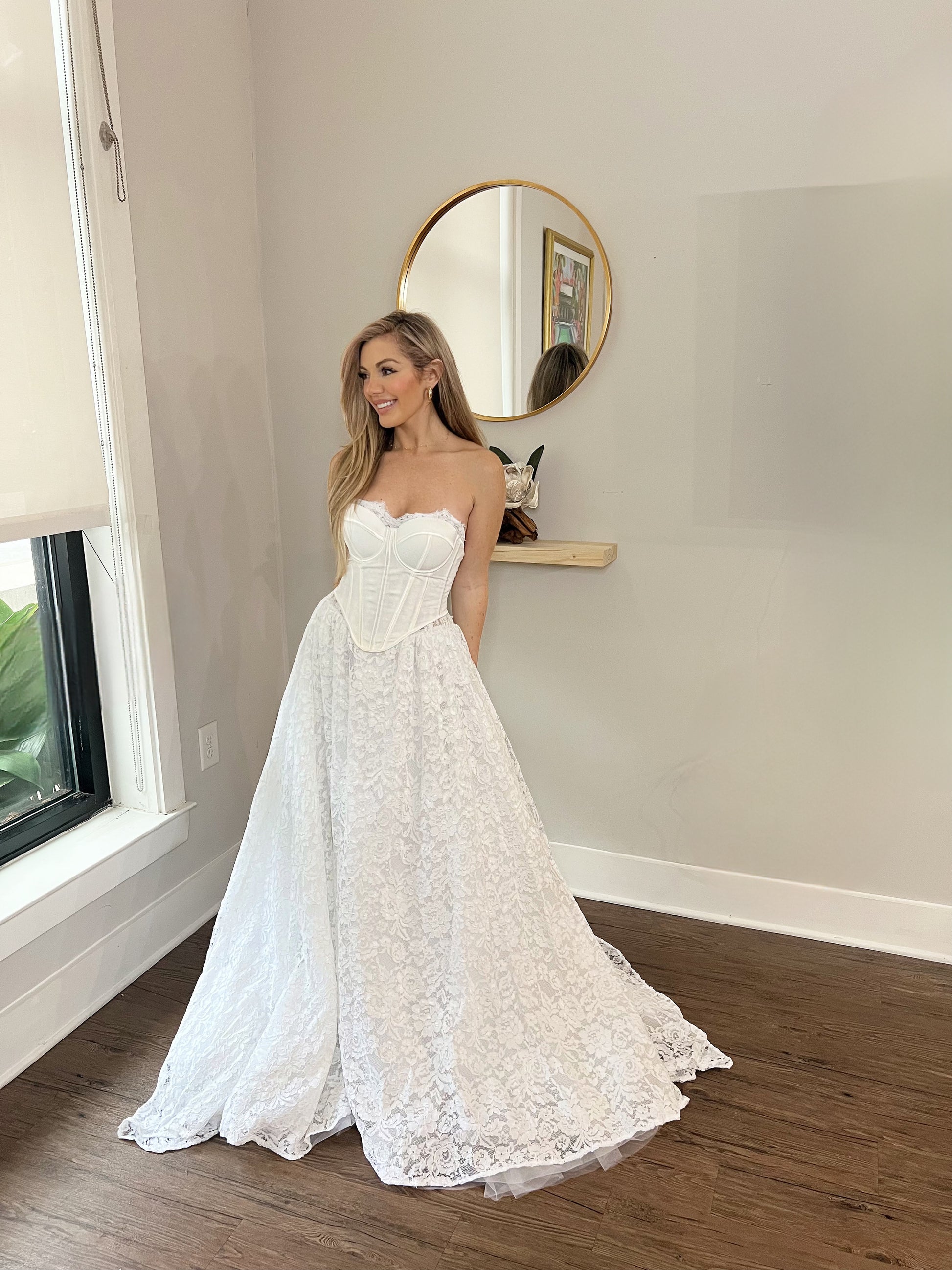 Strapless Corset Lace Ballgown Wedding Dress – Modern Bridal Elegance