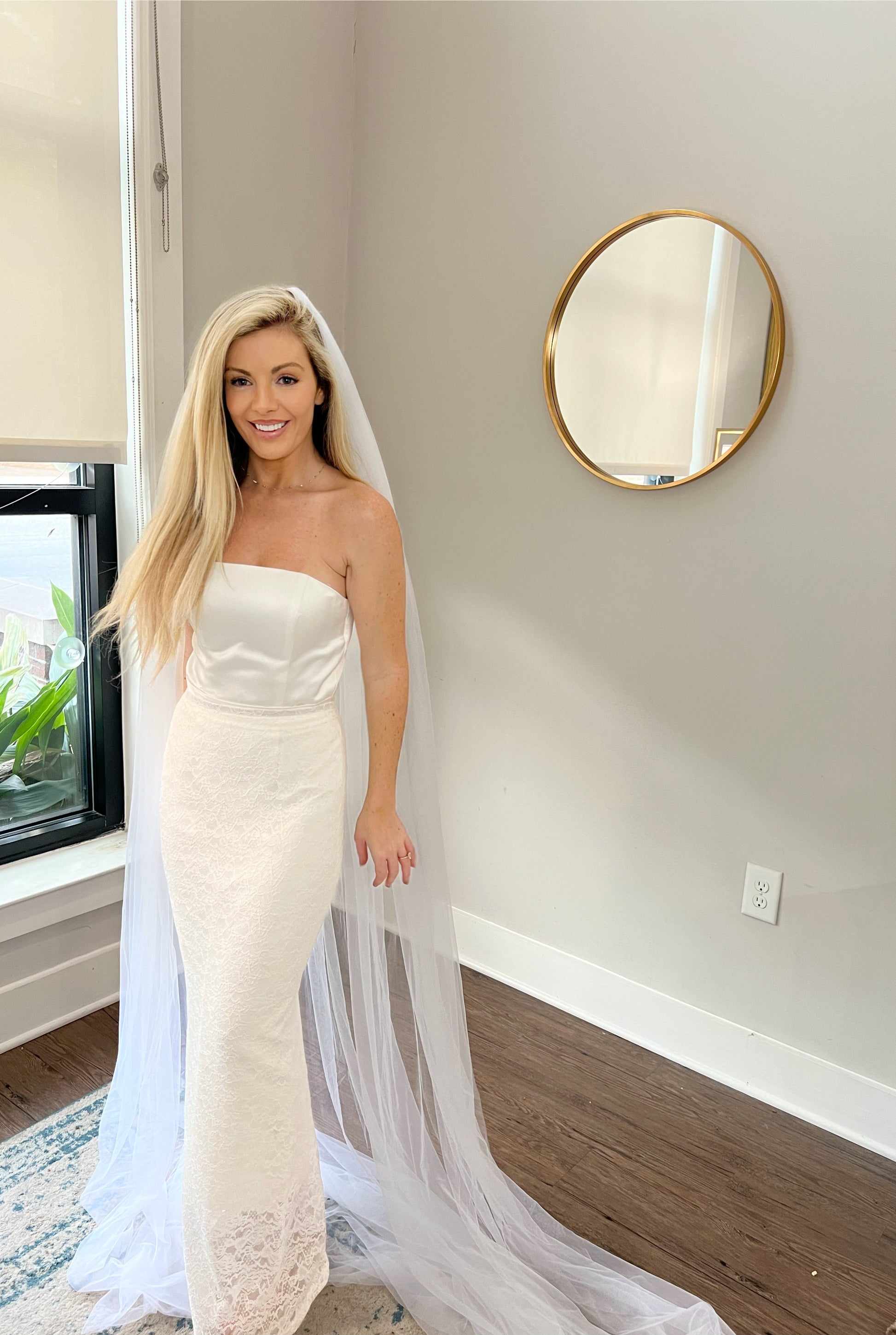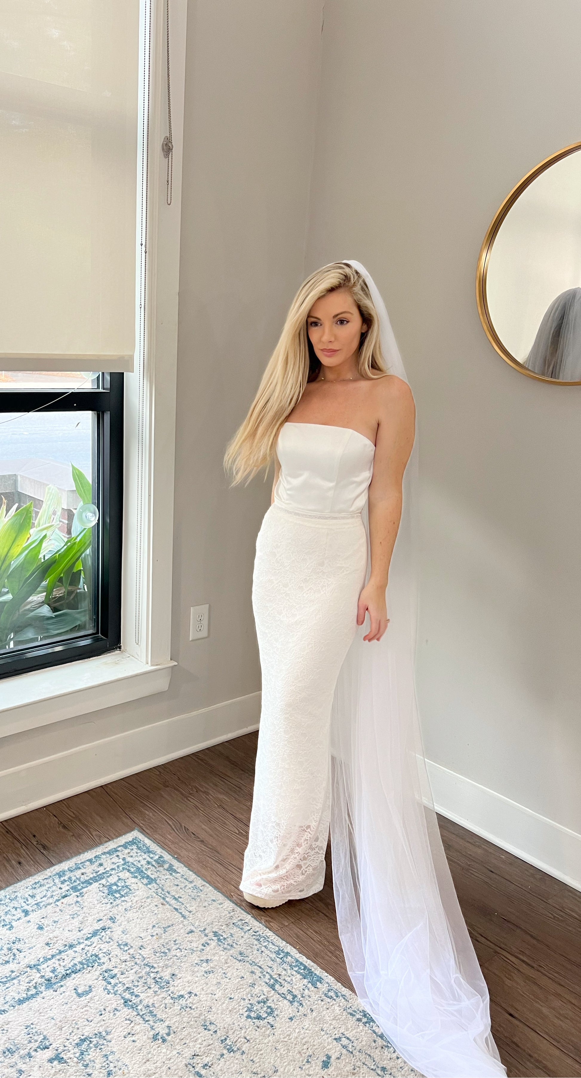 Two in One Wedding Dress Set Lace Overskirt & Strapless Midi