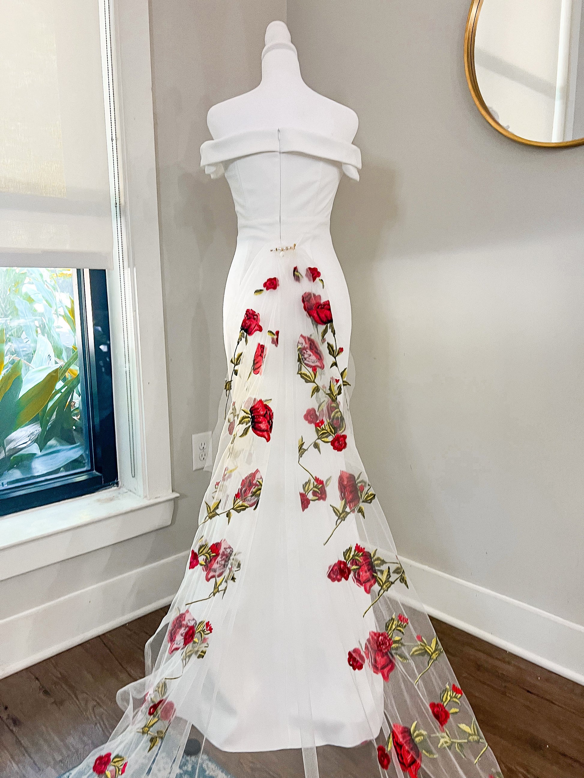 Item will arrive folded in a dress bag. If you decide this is the dress for your big day: We advise steaming the train to get any creases out due to being folded for shipping. Feel free to contact us with any questions.